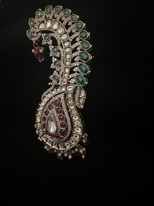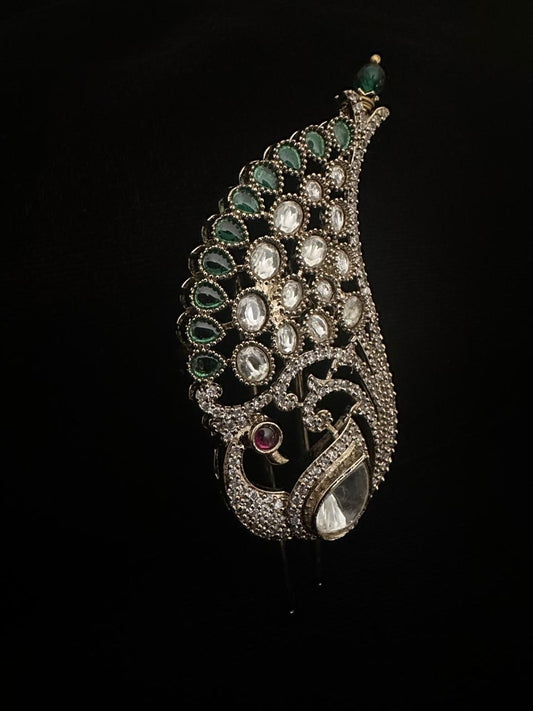 Silver kalgi with kundan and emerald