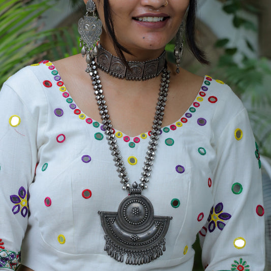 Navratri Silver Long Necklace