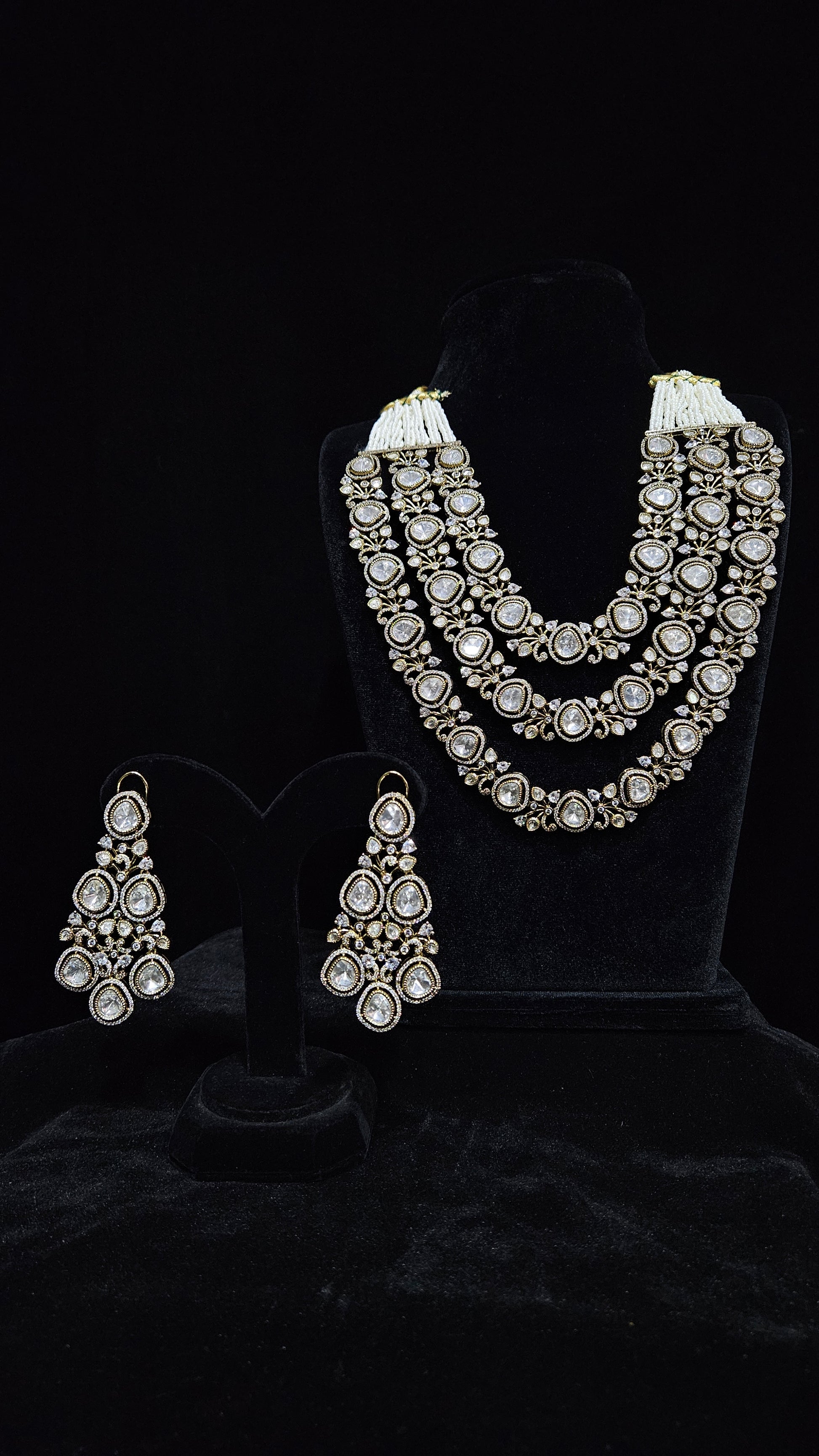 Big polki with diamond & pearl combination. Stunning polki set with vintage allure.